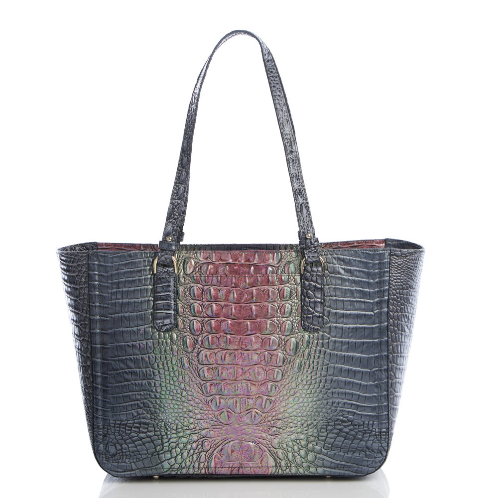 Featured in Radiance Ombre Melbourne, a shimmery blend of arctic blue, sage green, and pale pink hues. Genuine croc-embossed leather.