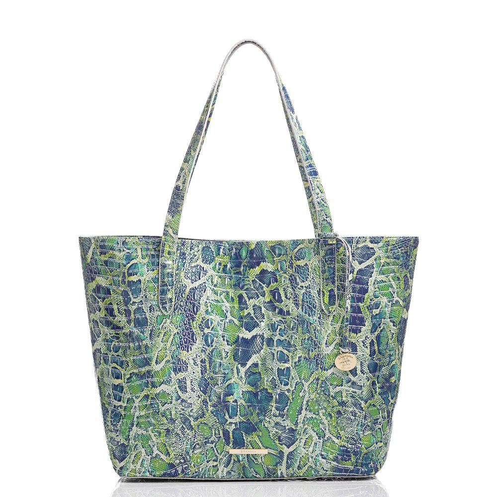 Featured in Green Viper Melbourne, an electric green-and-blue python print guaranteed to turn heads. Genuine croc-embossed leather.