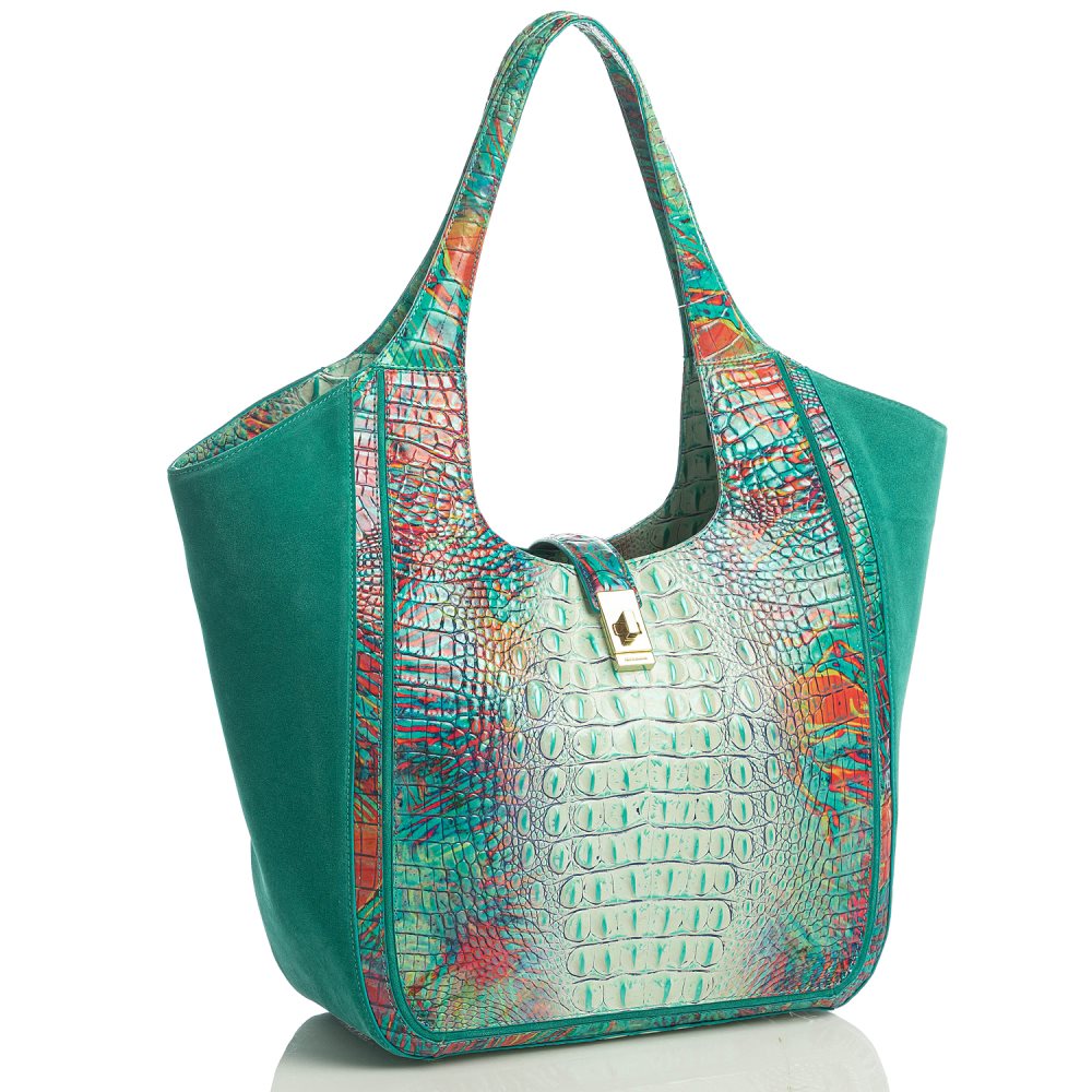 Featured in Dream Quantum, a combination of our vibrant Dream Ombre Melbourne with velvety teal suede. Genuine croc-embossed leather.