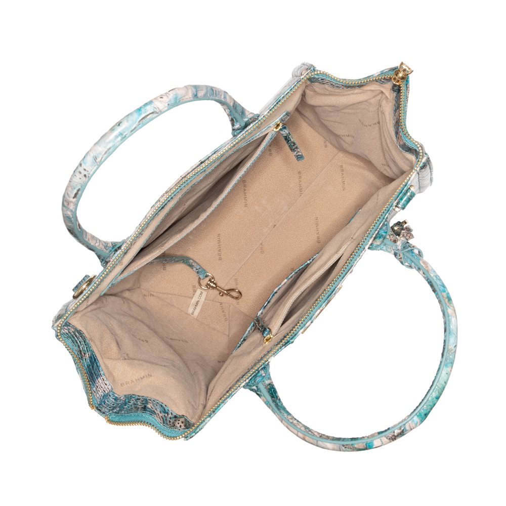 Featured in Blue Lace Melbourne, a dynamic combination of cerulean, stone grey and silver tones with a metallic finish. Genuine croc-embossed leather.
