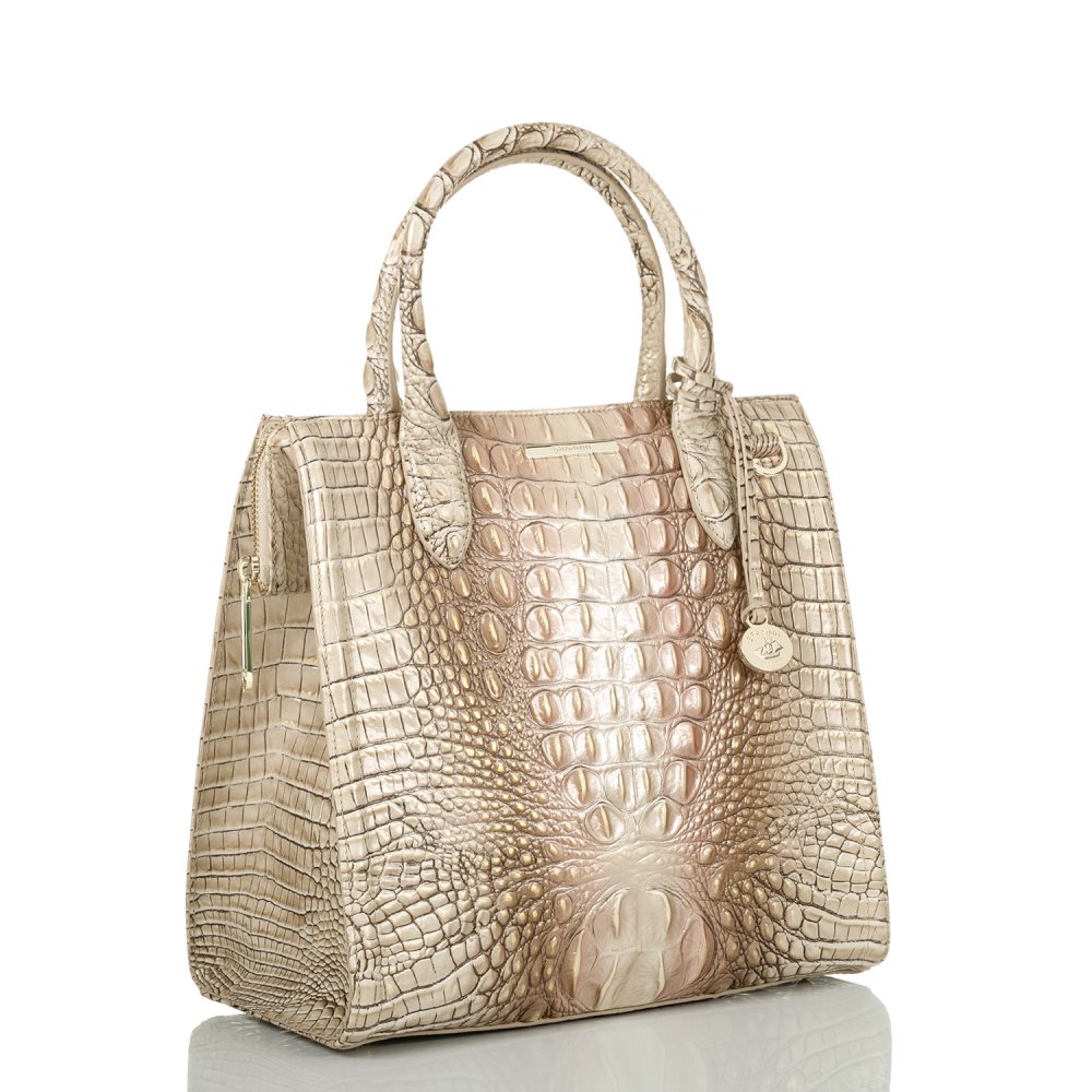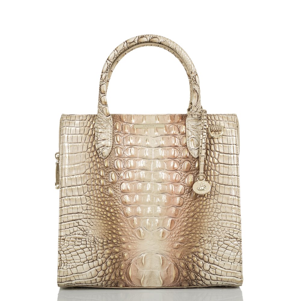 Featured in Scallop Ombre Melbourne, a soothing blend of sandy tan and pink tones. Genuine croc-embossed leather.