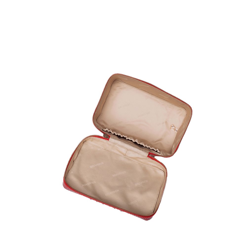 Featured in Carnation Melbourne, our signature croc-embossed leather in saturated true red. Genuine leather.