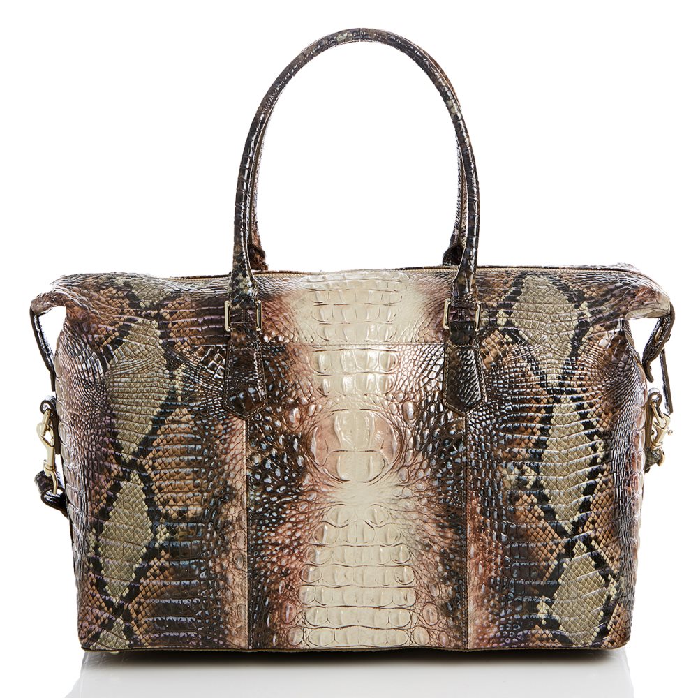 Featured in Diamondback Ombre Melbourne, an elevated snake print blending soft blush, rich cream, and mahogany shades. Genuine croc-embossed leather.