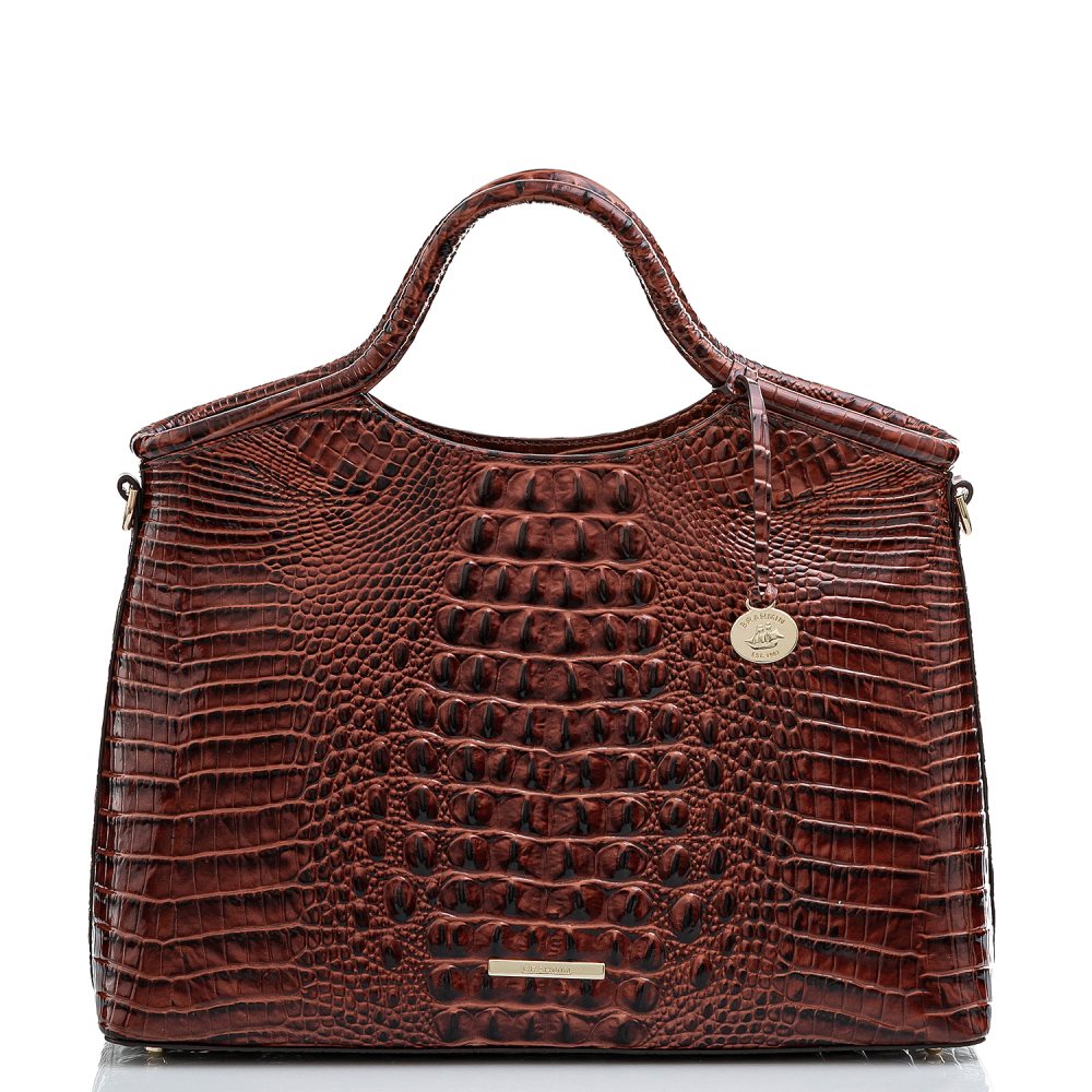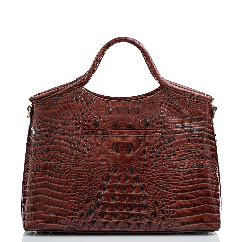 The Elaine is a statement-making satchel inspired by vintage Brahmin pieces. Equipped with a spacious interior and organizational pockets aplenty, carry everything you need by the comfortable rolled handles, or attach the adjustable shoulder strap for hands-free styling on the go.
