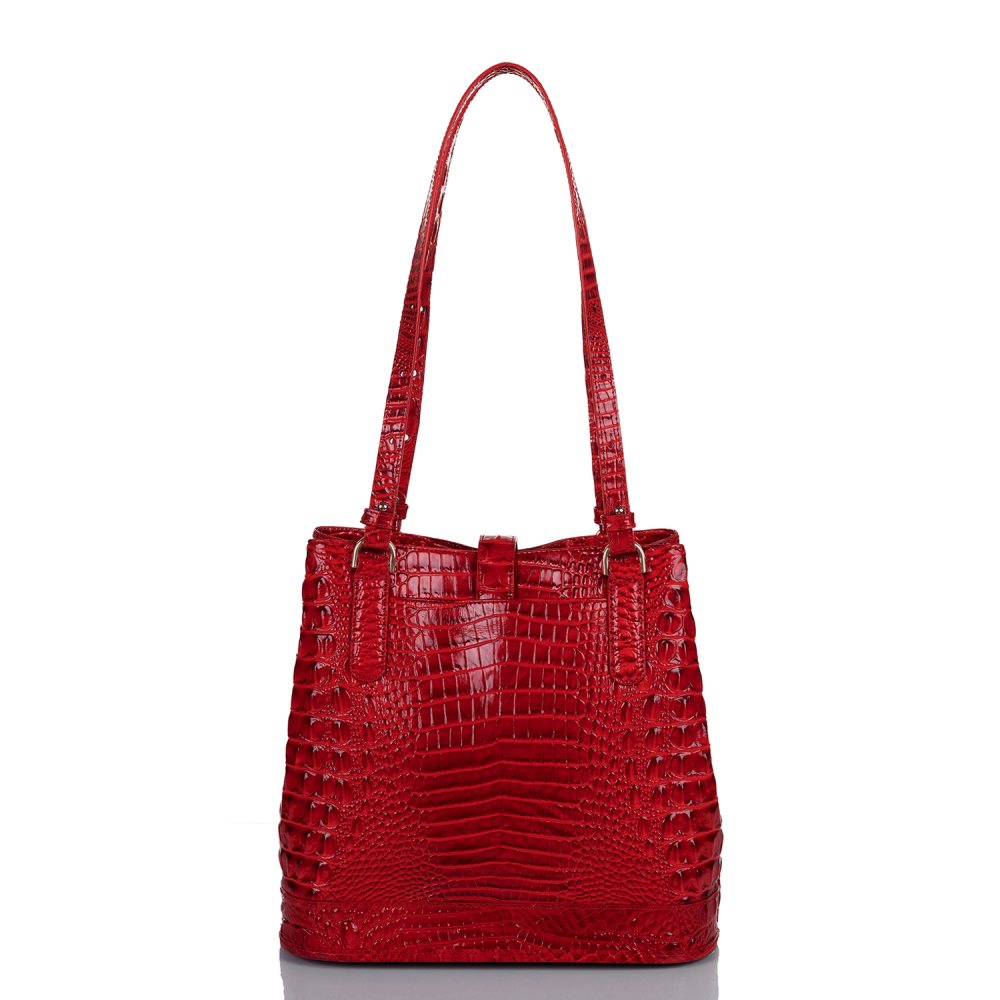 Featured in Carnation Melbourne, our signature croc-embossed leather in saturated true red. Genuine leather.