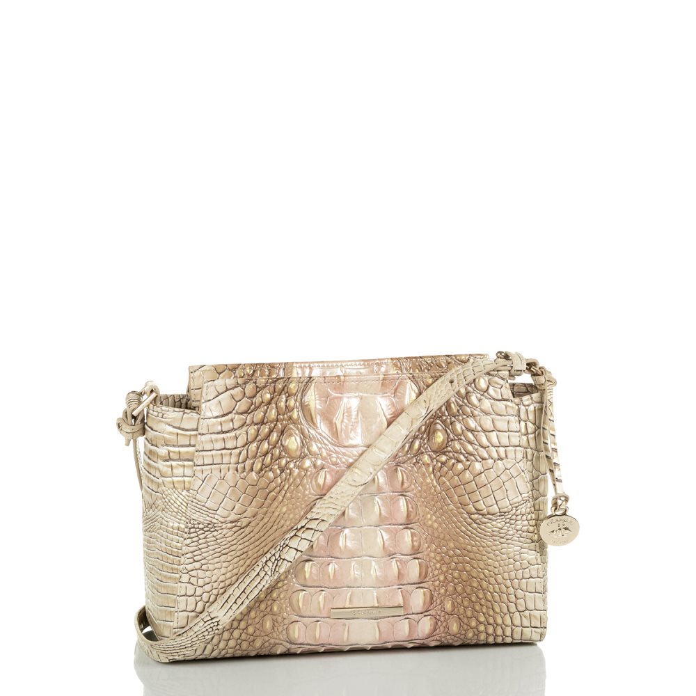 Featured in Scallop Ombre Melbourne, a soothing blend of sandy tan and pink tones. Genuine croc-embossed leather.