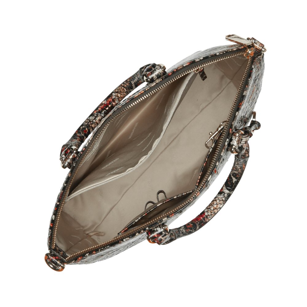 Featured in Charisma Melbourne, an alluring python print with warm pink, gold, and mahogany hues. Genuine croc-embossed leather.