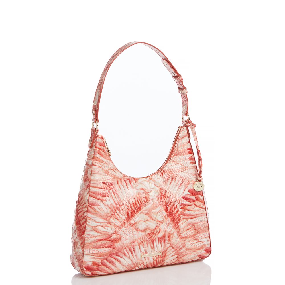 Featured in Pink Flamingo Melbourne, a feather print with delicate pink hues inspired by wings in flight. Genuine croc-embossed leather.