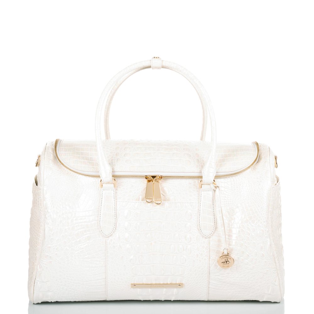 Featured in Milk Melbourne, our signature croc-embossed leather in a refreshing white shade with a shimmery iridescent finish. Genuine leather.